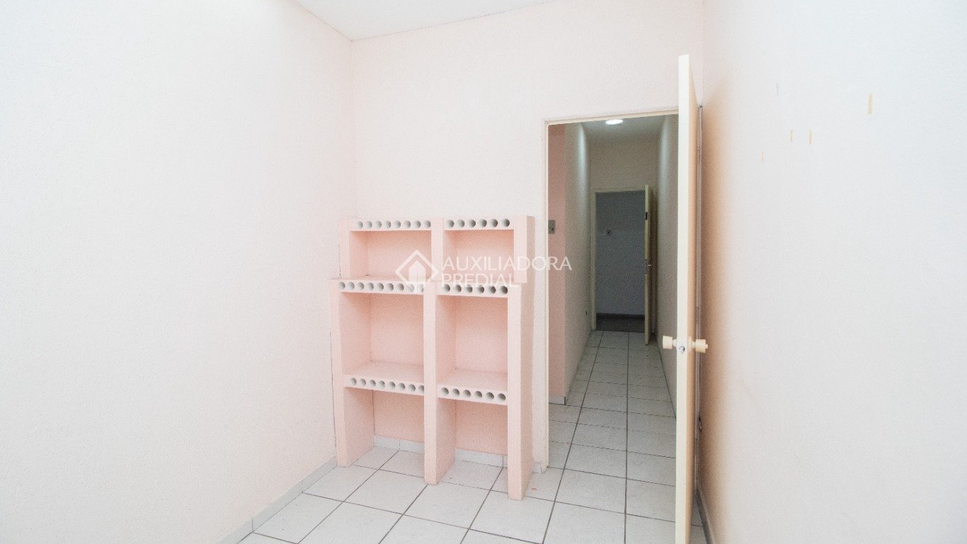 Sala simples com banheiro, sem vaga de garagem.