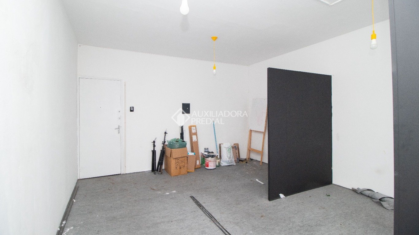 Sala simples com banheiro, sem vaga de garagem.