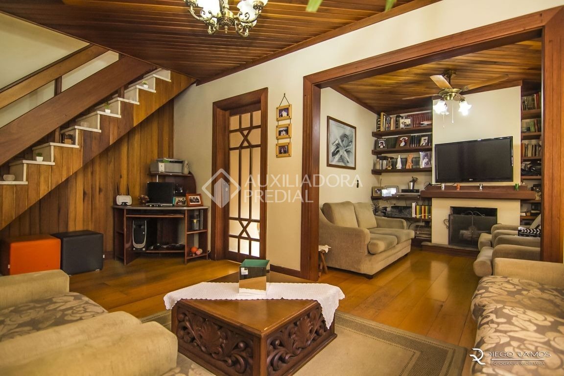 Cobertura duplex, com 256 m² de área privativa. No andar inferior, living para 2 ambientes com lareira, ampla cozinha integrada com dependência de empregada que virou copa, bem iluminada e ventilada, 2 dormitórios, sendo 1 deles suíte e um banheiro social. No andar superior, espaço gourmet com churrasqueira, sala de jantar, bar, lavanderia, 3 dormitórios, 2 deles com sacada, banheiro social com banheira de hidromassagem, grande lavanderia e um espaçoso terraço em "L". O terraço possui uma outra churrasqueira para ser utilizada na área externa. Todos os banheiros possuem água quente com sistema de gás central, porém utilizam chuveiros elétricos por opção, o sistema pode ser convertido facilmente para a utilização do junker. Condomínio conta com gás central, porteiro eletrônico, portão de garagem eletrônico, pilotis e cerca elétrica. Localizado próximo às avenidas Getúlio Vargas e Ipiranga e demais facilidades do bairro, como bancos, restaurantes e transporte público. O prédio situa-se e...